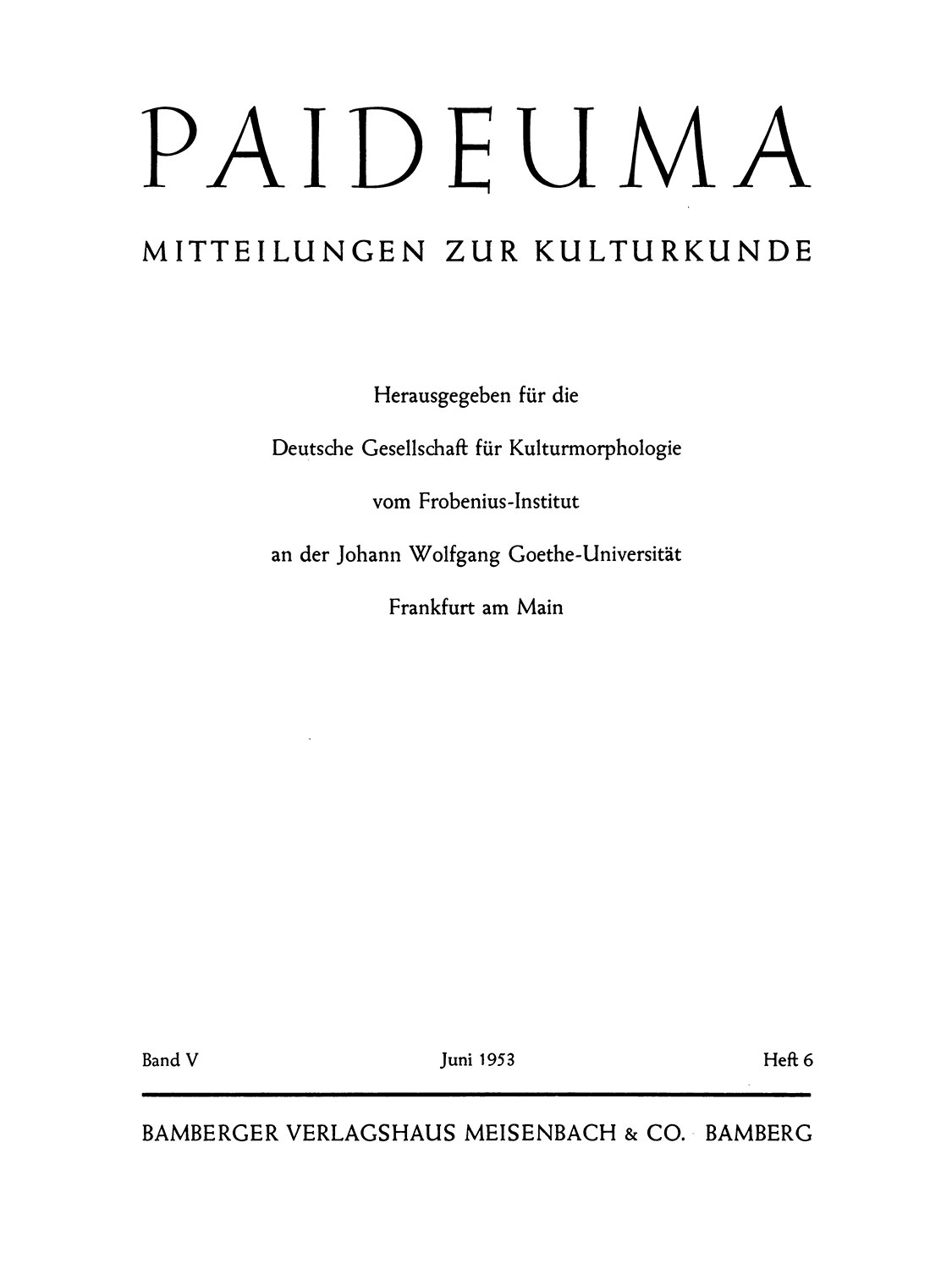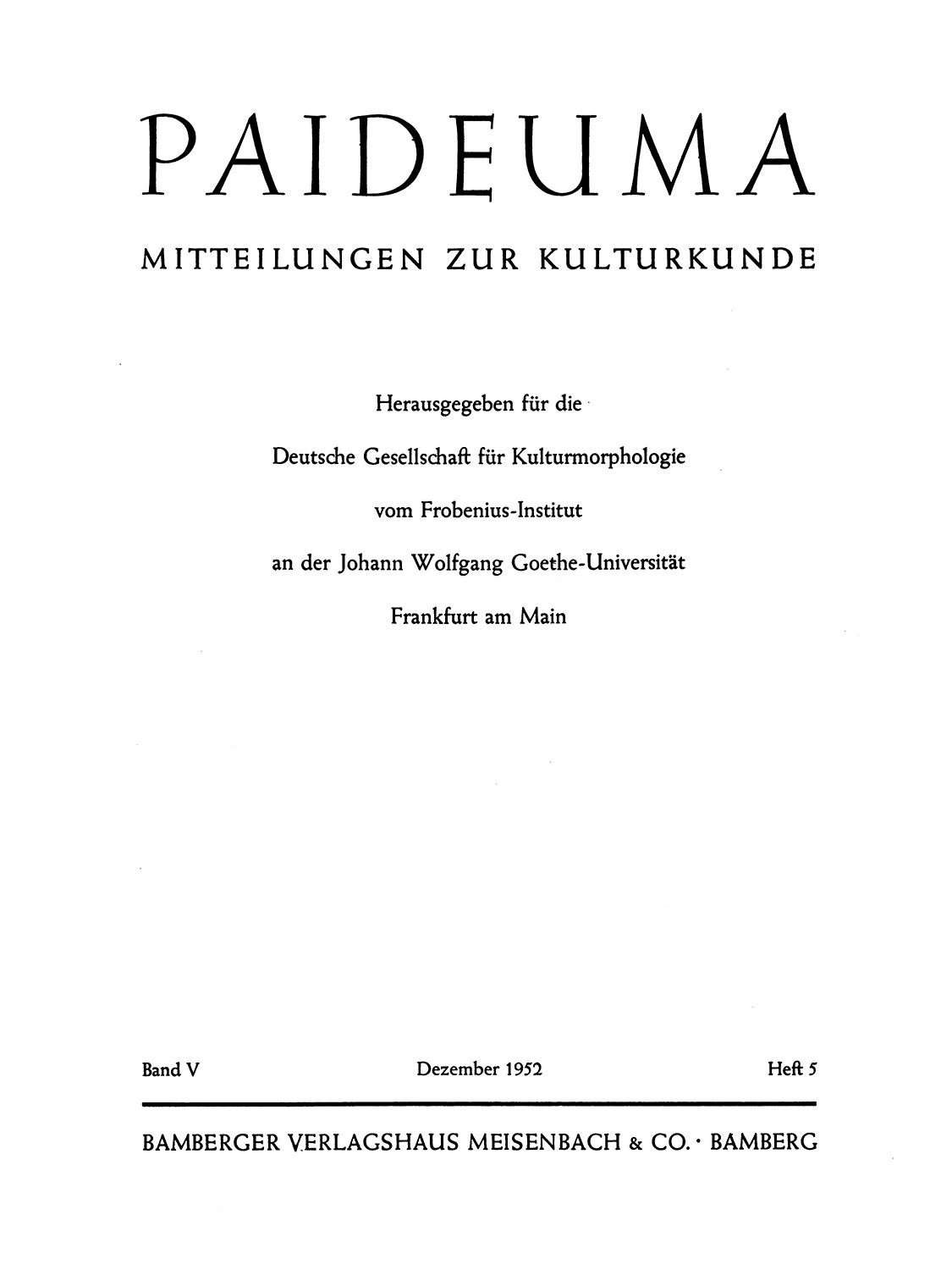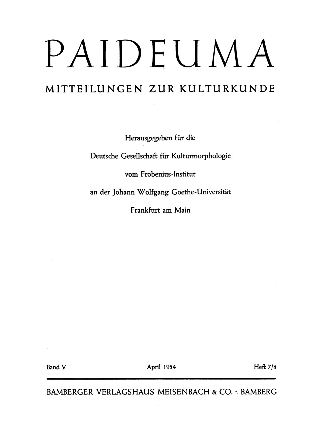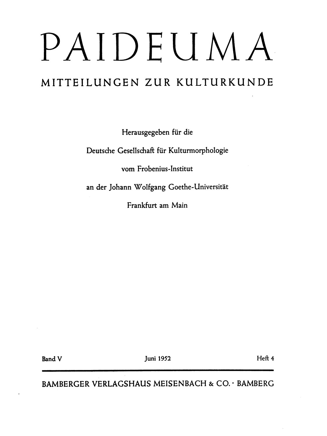 Paideuma. Mitteilungen zur Kulturkunde